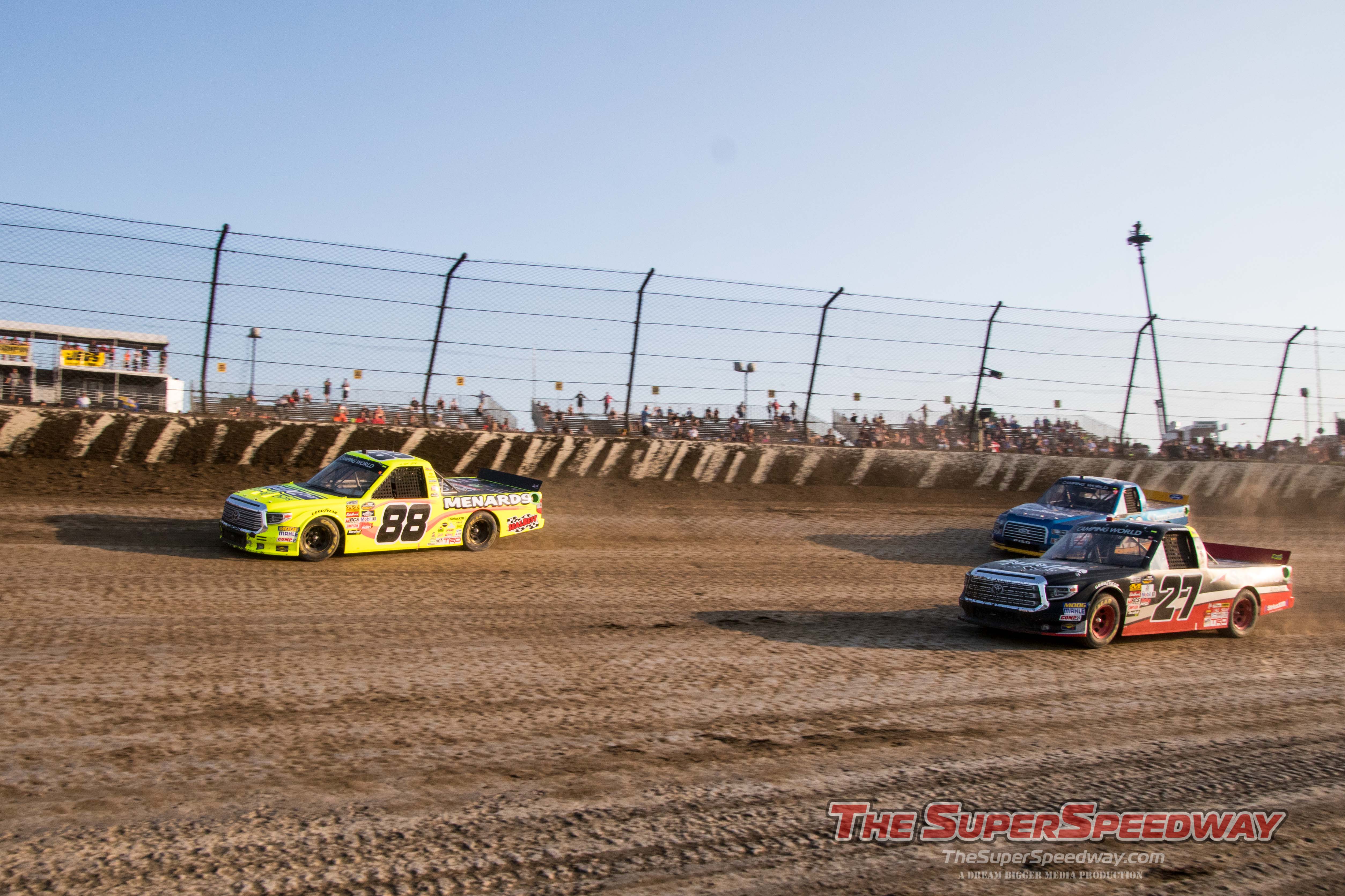 Kaz Grala earned the win in the third heat to take the third starting position. Christopher Bell will start fourth with a win in the fourth heat and Ty Dillon will start fifth with a win in the fifth heat.