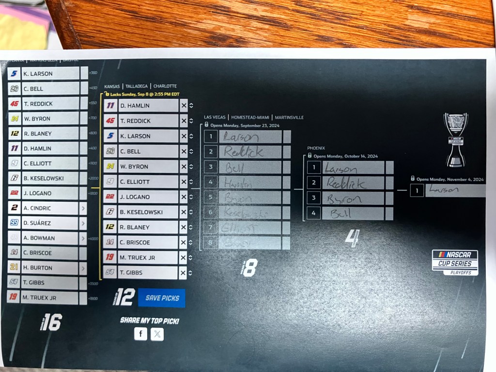 - Out of the playoffs: Gibbs, Keselowski, Truex and Burton